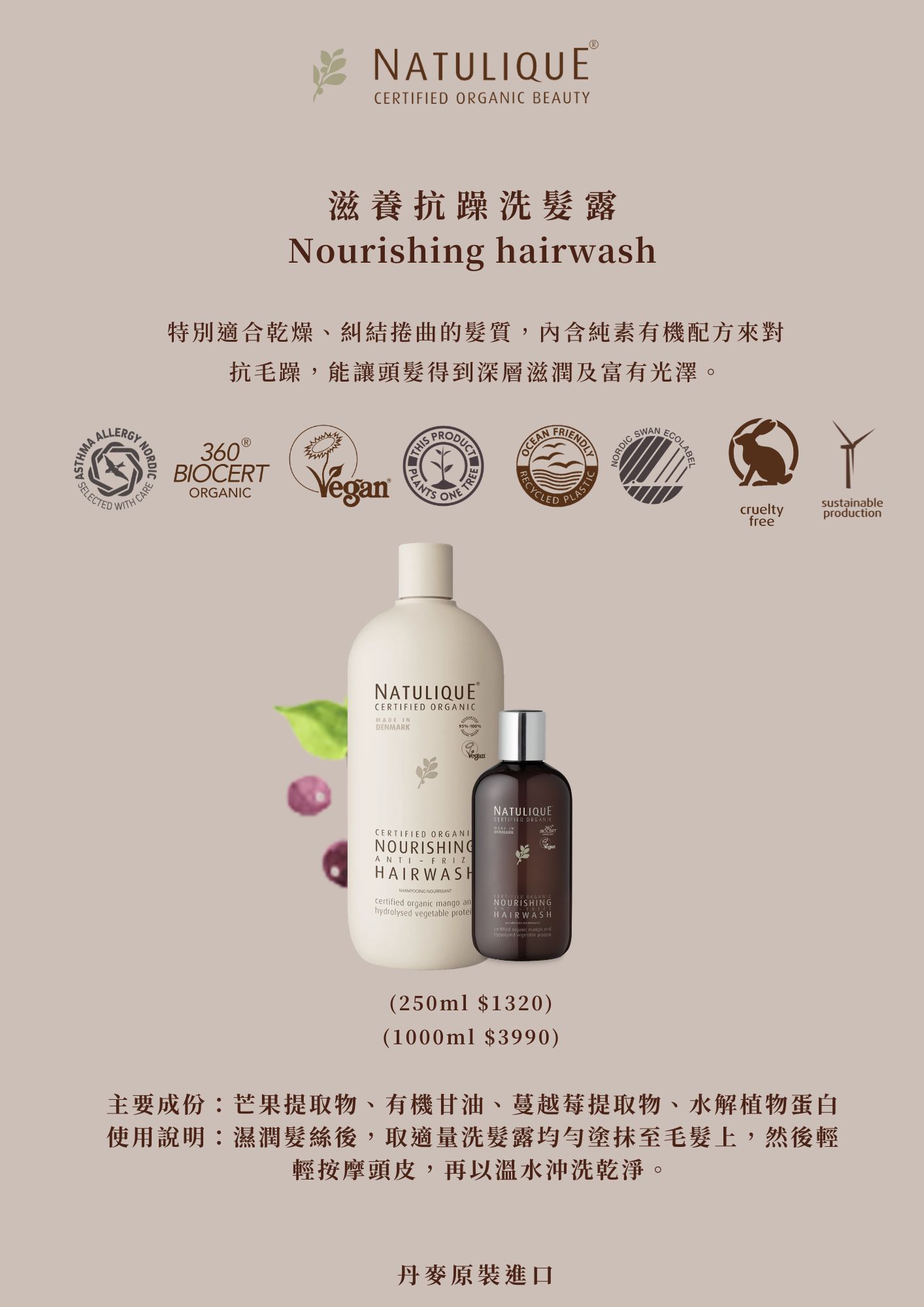 • 型號: 滋養抗躁洗髮露Nourishing hairwash